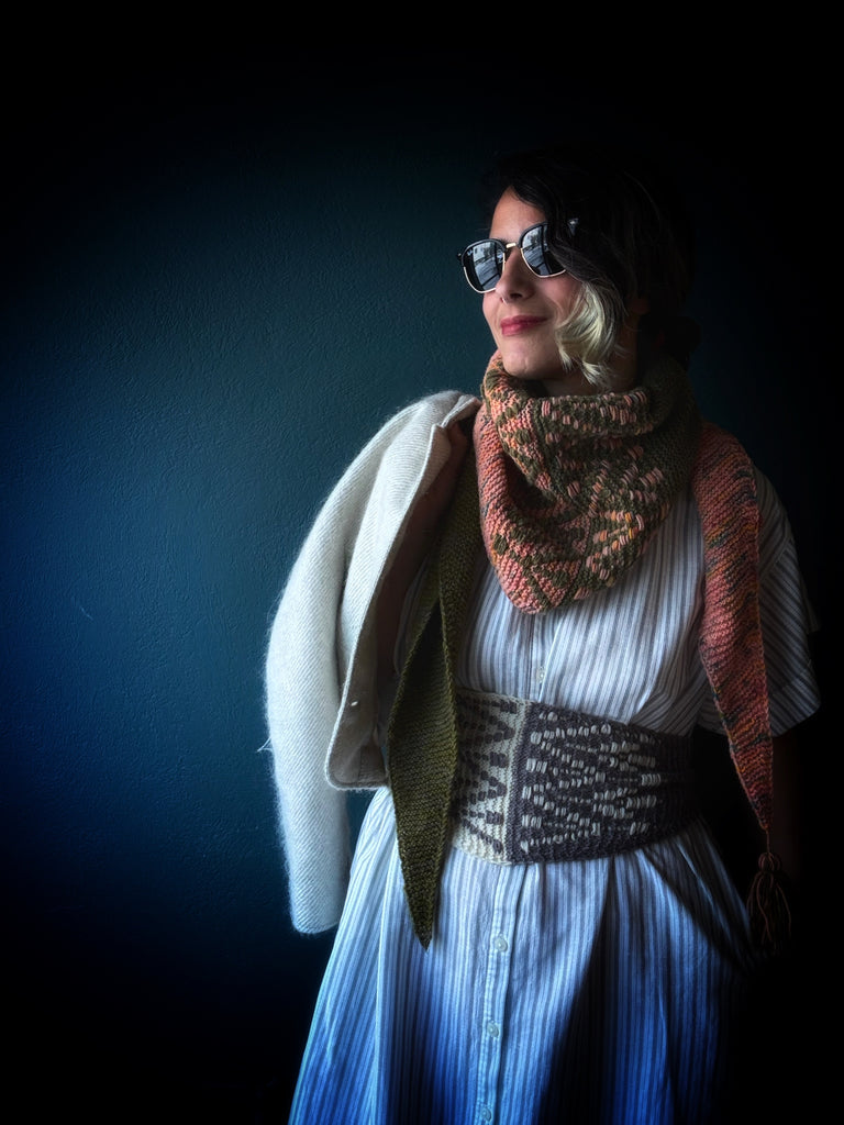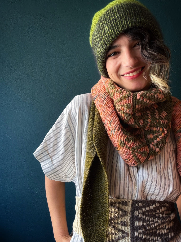 I propose to you two size kits, a small one (1 skein of each base), and a medium one (2 skeins of each base). I also talk in depth about the pattern in my podcast (english and french).
