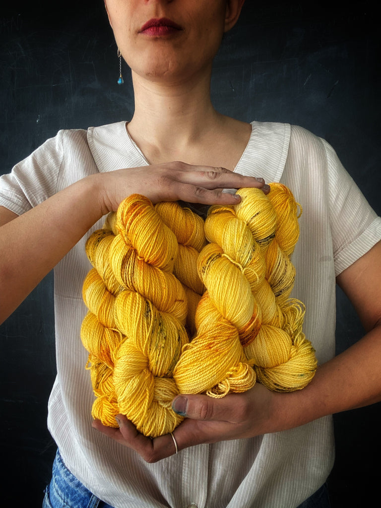 My yarns are soaked in an essential oil solution, to give it a nice smell and repeal those moths. If you are sensitive to smells please send me a note with your order, otherwise when you get your skein just soak it in cold water for 10 minutes and hang it to dry.